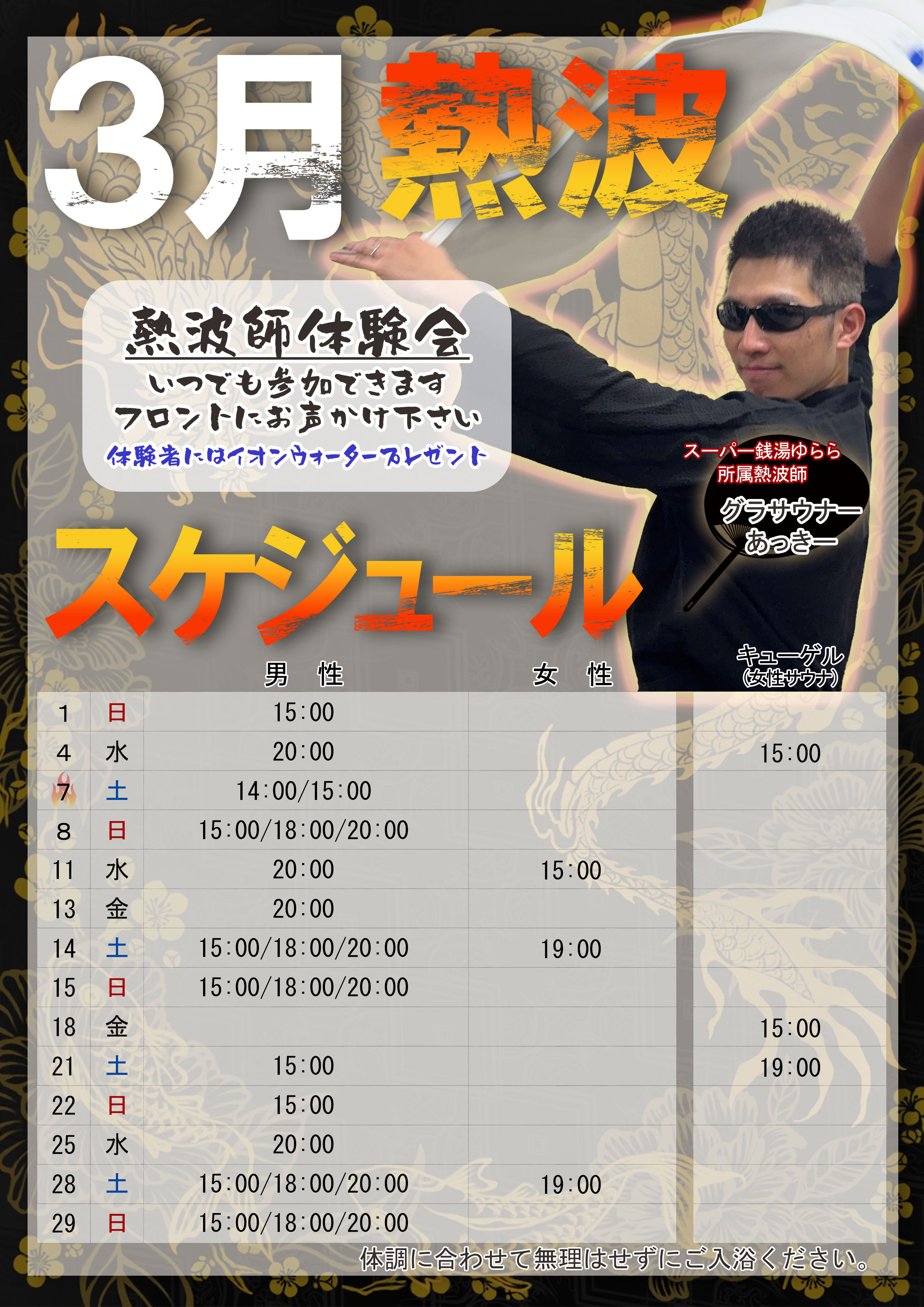 3月のサウナイベントスケジュールです。